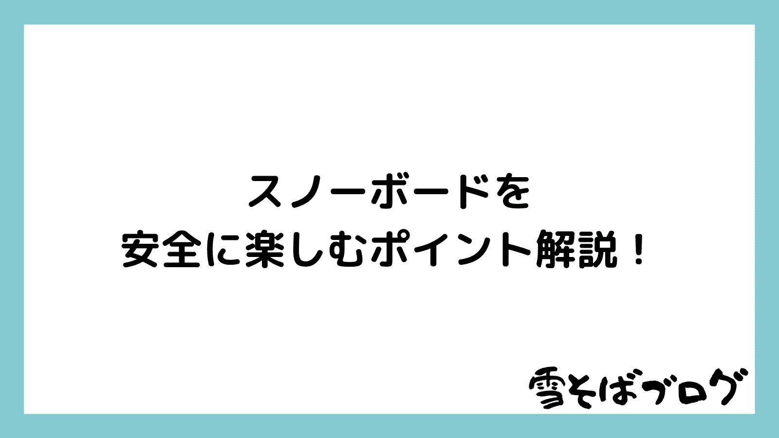 スノーボードを生涯スポーツとして、安全に楽しむためのブログです